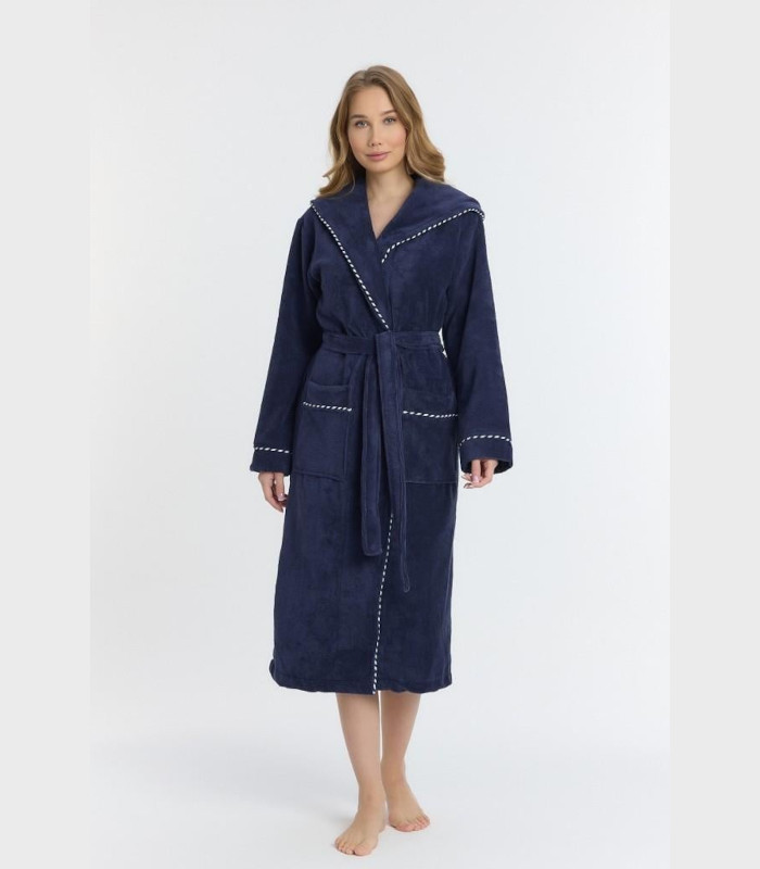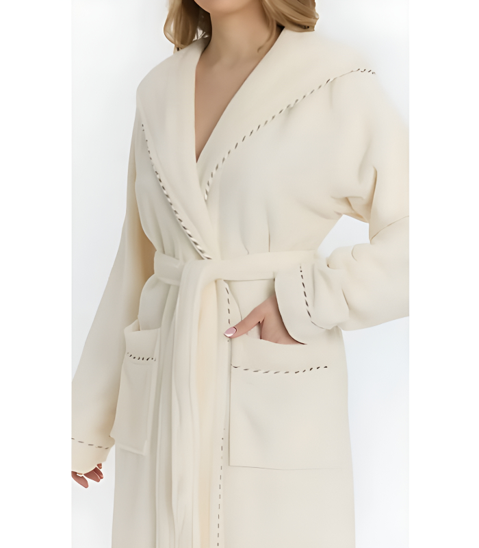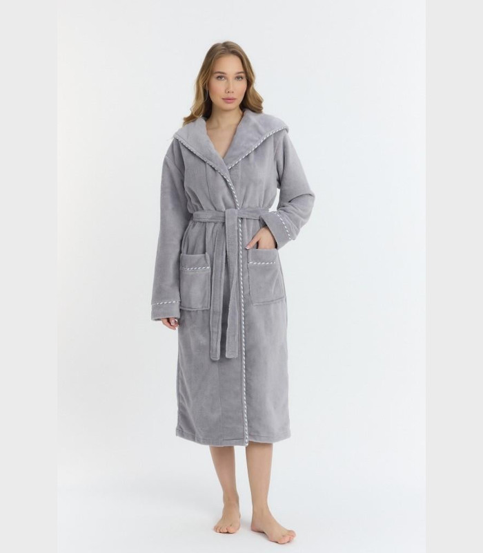 Нашият халат с качулка се отличава с премиум Triga качество и внимание към женските нужди. Макси дължината и удобният крой правят този женски халат идеалното решение за пълна покритост и елегантност в домашна обстановка.
