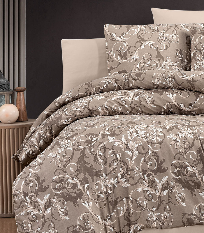 Потопете се в атмосферата на уют с нашето спално бельо Ecosse Veronica в елегантен кафяв цвят. Този премиум комплект от високачествен ранфорс със 100% памук е специално създаден за двойни легла, предлагайки перфектна комбинация от стил, комфорт и дълготрайност.