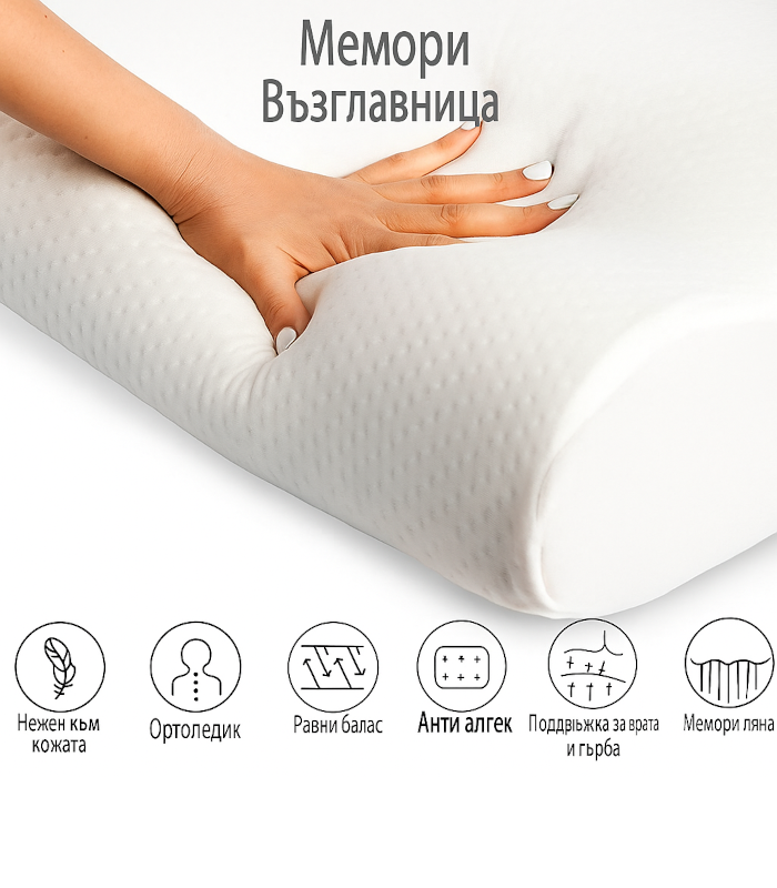 Инвестирайте в здравословния си сън с нашата ортопедична възглавница мемори пяна 50х30 см. Поръчайте сега и се възползвайте от безплатна доставка!