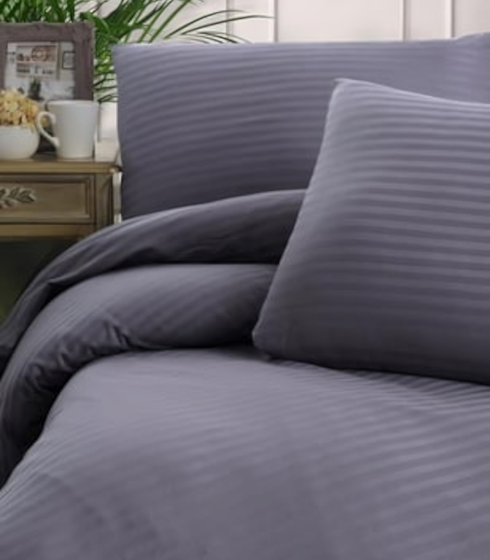 Спално бельо от памучен сатен антрацит с райе 200×220 см – Луксозна елегантност за изискани спални